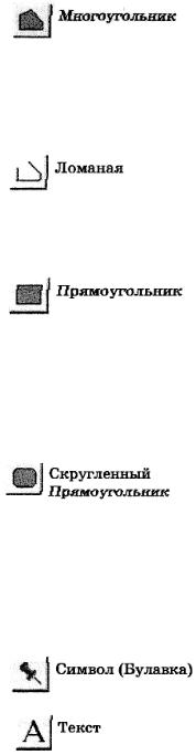рисования и редактирования графических объектов. Эти средства позволяют создавать и изменять объекты на Картах. Кроме того, они дают возможность менять цвета объектов, типы штриховок и линий, символов и вид текста на Карте. С помощью этих инстру-