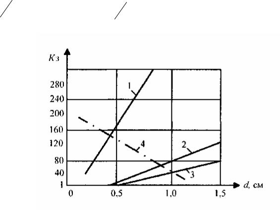 hn d = 0,05, d = 0,6...1,2 см и d d1 = 1…3 значения Кз составляют 0,2…0,5,