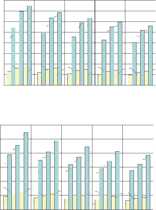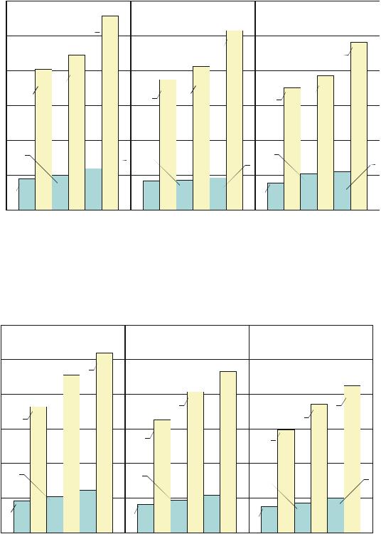 Рис. 7.4. Допускаемые и предельные значения продольных неровностей для автомобильных дорог категорий III и IV, городских дорог и улиц местного значения, поселковых дорог: 1–3 – допускаемые значения при отличном, хорошем и удовлетворительном состояниях; 4–6 – предельные значения при отличном, хорошем и удовлетворительном состояниях