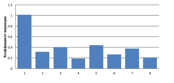 Средний коэффициент вариаций по показателям дороги составил 1,02, по сформированным ЛДК изменяется от 0,19 до 0,4, среднее значе-