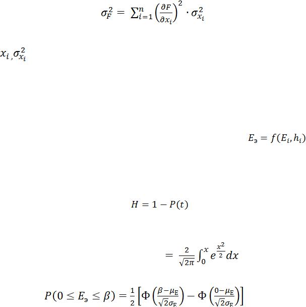 В работах [47,64,82,122] на примерах проектирования дорожных одежд разного типа доказано, что можно проектировать конструкцию с заданной надежностью, не прибегая к прогнозированию вероятных отказов, а базируясь на статистическом анализе качества материалов, уровня технологий, вероятностных факторов природной среды. На основе формулы распространения ошибок, известной из теории вероятности и предложенной для дорожных конструкций И.А. Золотарем, вычисляется дисперсия функции (результата) на основе дисперсий составляющих ее элементов [82]: