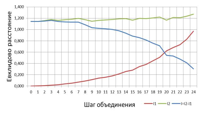 Рис. П.1.7. График изменения межклассовых и внутриклассовых расстояний