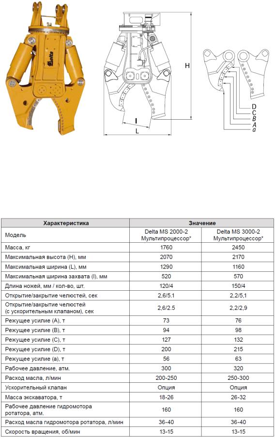 усилие 700 кН, захват 780 мм, масса 750 кг. |