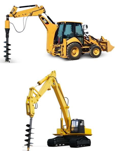 Большинствобсовременной спецтехники оснащается гидравлическими бурами. Чем крупнее и мощнее техника, тем больше и мощнее бур на нее можно установить. Таким образом, в основном минитехникуииспользуют для урения отверстий диаметром 10–20 см. Большие крупные экскаваторы можно использовать с гидробурами, диаметр которых не превышает 100 см. А вот на крупногабаритную техн ку есть возможность устанавливать гидравлические буры, диаметр которых может дост гать 150 см. Такие большие гидробуры ис-