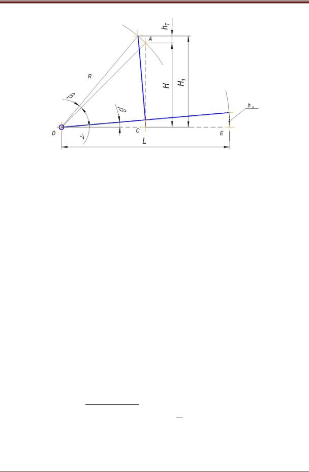 Рис. 2. Расчетная схема вертикального перемещения стрелы при тангаже