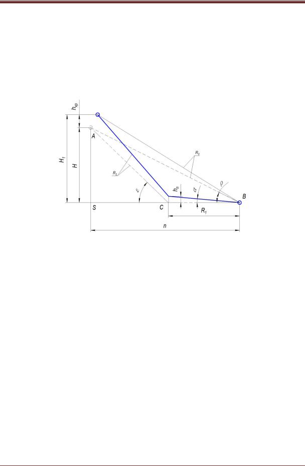 Рис. 5. Расчетная схема вертикального перемещения конца стрелы
