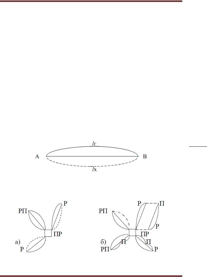 Рис. 1. Схема маятникового маршрута, с обратным не груженым пробегом: А – пункт погрузки; В – пункт разгрузки; lг – расстояние перевозки груза за ездку lх – пробег без груза за ездку