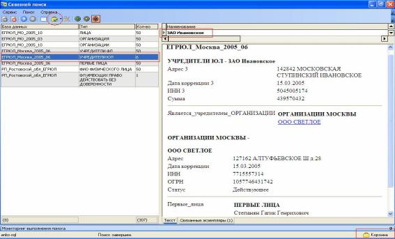 Для просмотра результатов поиска в витрине АРМ «Аналитик» система автоматически подключится к тому серверу, на котором идет поиск, и расположенной на нем БД.