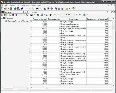 Для загрузки данных примера импортируйте файл C:\Program Files\BaseGroup\Deductor\Samples\CreditSample.txt в АП «Deductor» с