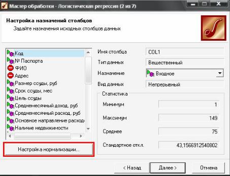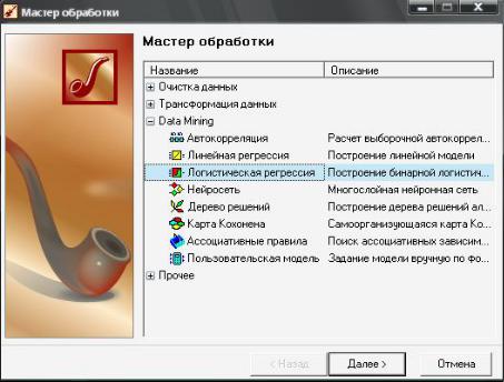 В мастере обработки выберите способ обработки «Логистическая регрессия».
