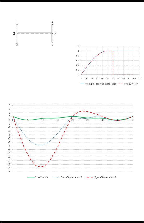 нии x=10 м, и динамический с обрывам вант в том |