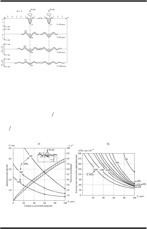 (б) от скорости движения нагрузки, в 50 кН на колесо