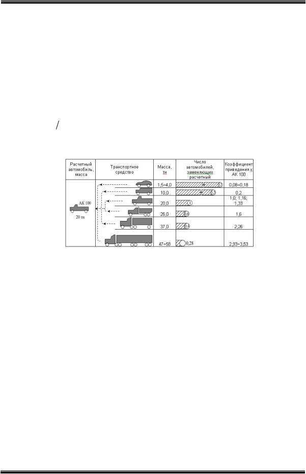 Рассмотрим теперь тяжесть воздействия на полупространство транспортных средств с массой и нагрузкой на ось (колесо), отличной от расчетной. Число автомобилей, эквивалентных по воздействию проезду расчетного автомобиля, вычисляется как отношение амплитудно-частотных характеристик: