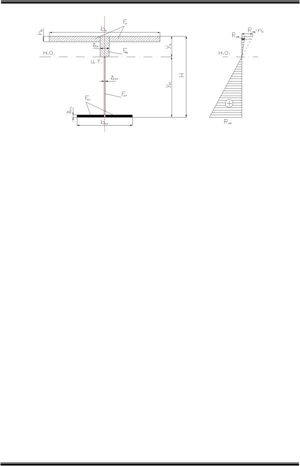 назначают не менее 15 см. Значения толщин железобетонного ребра, стальных стенки и горизон-