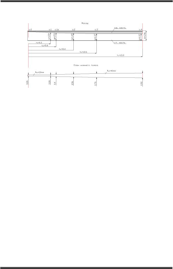 балки и площадь нижнего стального пояса) становятся исходными для проектирования менее напряженных сечений. Переходя к их проектированию, следует отметить, что принятые параметры железобетонной плиты должны быть сохранены постоянными на всей длине пролетного строения, вследствие чего плита во всех сечениях кроме срединного будет недонапряжена. Для разрезных балочных систем целесообразно применять балки постоянной высоты, что требует сохранения найденной для срединного сечения «оптимальной»