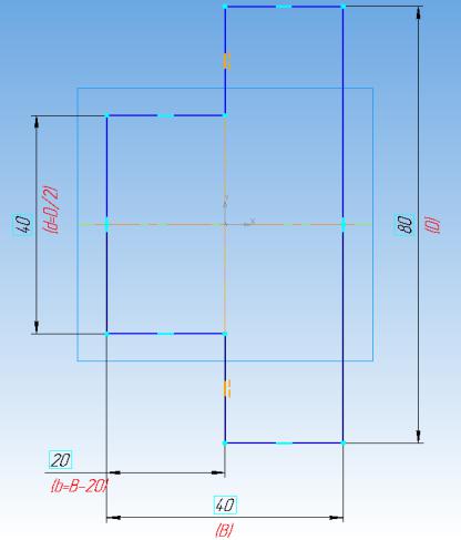 Рис. 5.10. Контур детали с размерами для создания параметрической модели