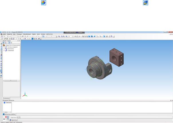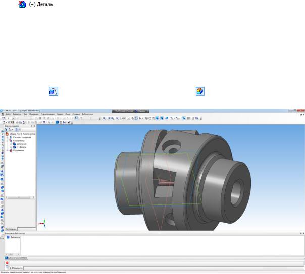 файл ДЕТАЛЬ 1.m3d и нажмите ОК. Деталь при вставке отображается в виде свободно перемещаемого фантома. ля фиксации детали в сборке достаточно щелкнуть кнопкой мышиД.