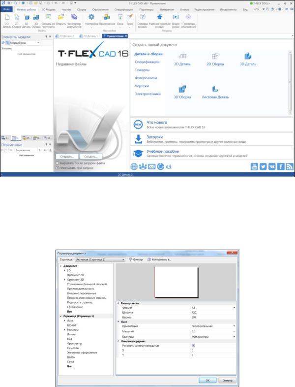 Си бАР с. 7.2. Окно приветствия системы T-FLEX CAD