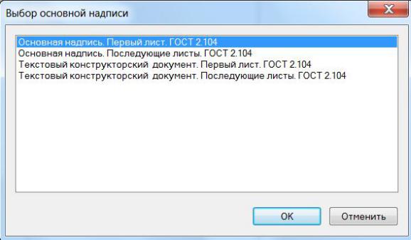 СибАР с. 7.4. Диалоговое окно Выбор основной надписи