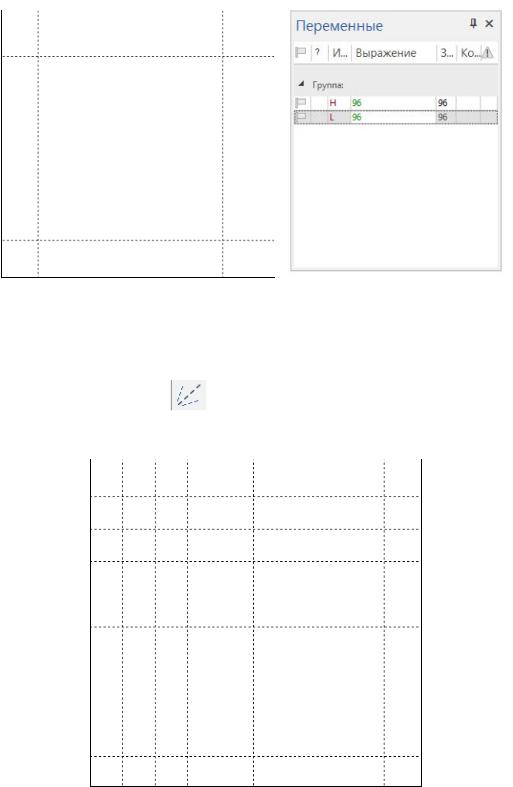 Аналогично постройте вертикальные прямые: Чертеж → Построения → → Прямая → Создать вертикальную прямую → Нажать левой кнопкой мыши на созданную прямую → Параметры прямой → Расстояние → Создать переменную L → окно Переменные → задать значение L=96. В окне Переменные появятся переменные и указанные для них значения