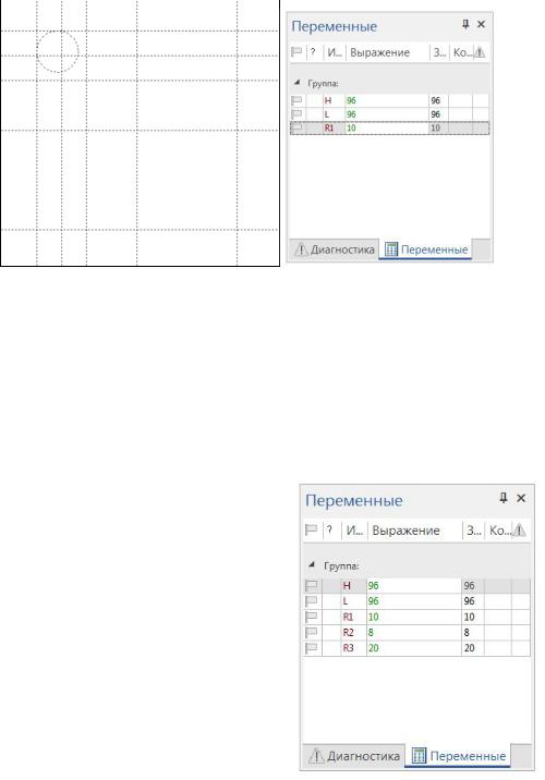 ли: Чертеж → Построен я → Окружность → Отметить ЛКМ две прямые, касательные к окружности → Параметры окружности → Радиус → Создать переменную R2 → окно Переменные → задать значение R2=8. Аналогично создайте переменную R3=20 (рис. 7.8).