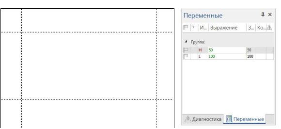 Аналог чно постройте вертикальные прямые: Чертеж→ Построения → → Прямая → Создать вертикальную прямую → Нажать левой кнопкой мыши на созданную прямую → Параметры прямой → Расстояние → Создать переменную L → окно Переменные → задать значение L=100. В окне переменных появятся переменные и указанные для них значения (рис. 8.2).