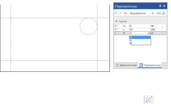Рис. 8.2. Линии построения и окно Переменные