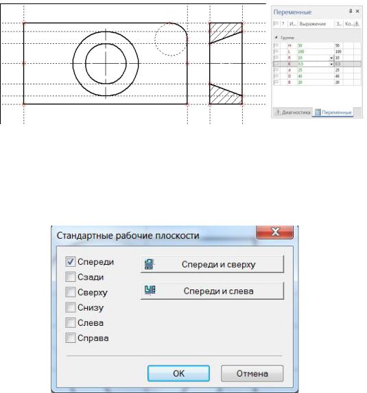 Рис. 8.7. Диалоговое окно для создания рабочей плоскости Вид спереди