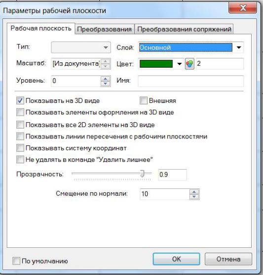. В параметрах рабочей плоскости выберите: Задать параметры элемента