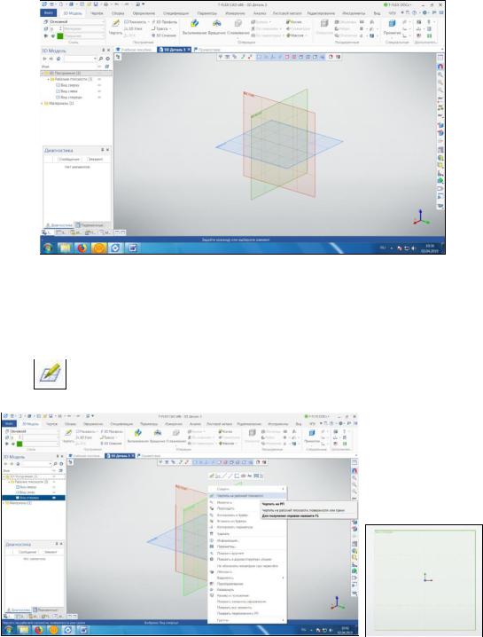 После создания 3D-модели необходимо открыть окно 2D для построения проекций. Для этого необходимо нажать на рабочей панели инст-