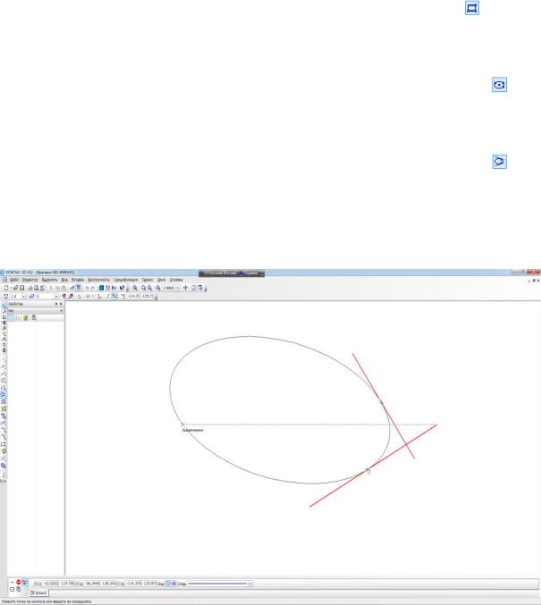 позволяет вписывать эллипс в произвольно ориентированный на чертеже параллелограмм. При вызове данной команды следует поочередно указать три точки: центр параллелограмма (точку пересечения его диагоналей), середину одной из сторон параллелограмма, а также одну из его вершин. При указании середины стороны выбранного параллелограмма удобно пользоваться локальной привязкой Середина, вызываемой