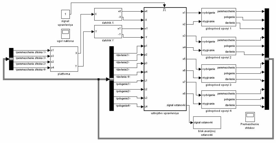 Рис. 3.36. Модель системы управления положением платформы, выполненная в обозначениях Simulink