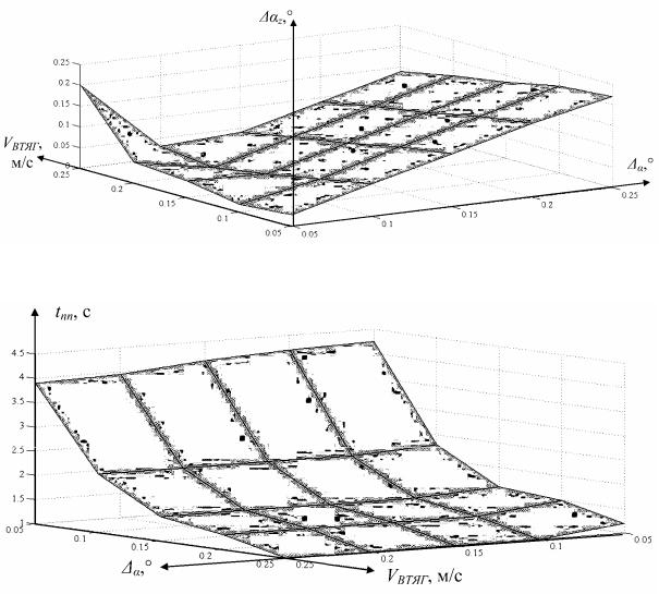 зависимости αz, tпп от VВТЯГ и α (рис. 4.6, 4.7) при величине запаздывания гидропривода системы управления τгп=0,1 с.