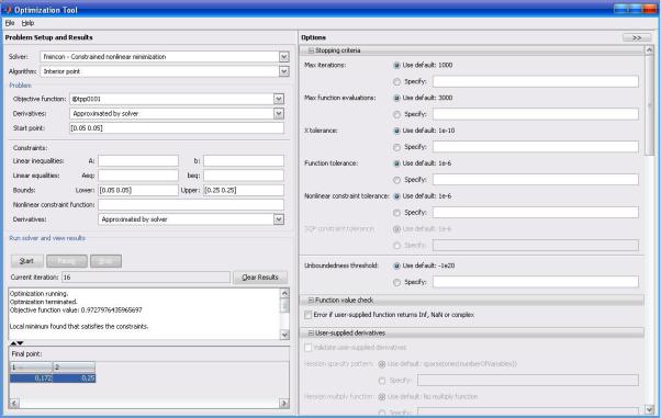 Рис. 4.12. Внешний вид окна инструмента «Optimization Tool»