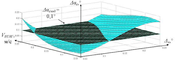 5.Найти интервалы допустимых значений VВТЯГ и α для заданной точности αzзад.