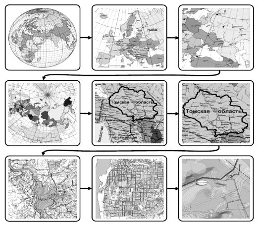 Рис. 5.1. Виды ГИС по пространственному охвату (от глобальных до ультралокальных)
