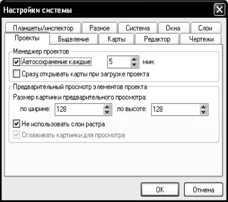 В процессе ввода, редактирования и анализа данных в системе IndorGIS возникает необходимость настройки различных параметров системы. В соответствии со структурой проекта в IndorGIS можно настраивать параметры системы, проекта, карты или слоя (рис. 9.8).