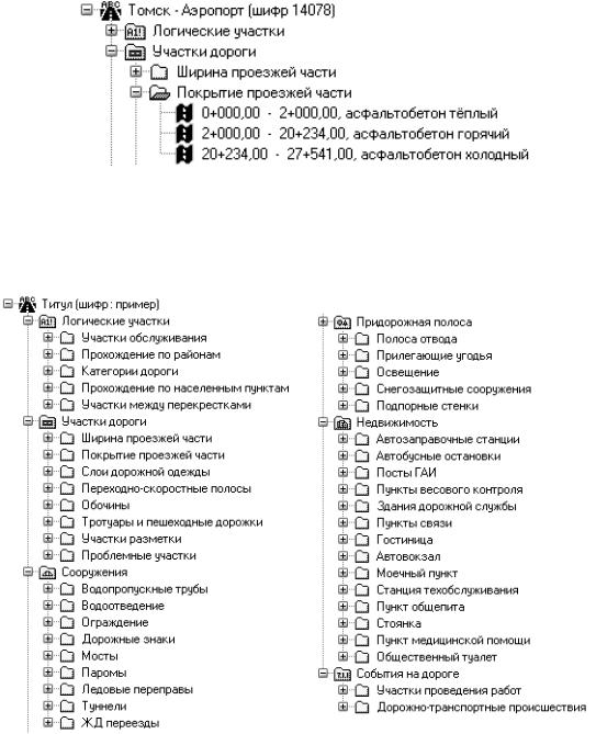 Расположенные в рабочей области титулы и составляющие их объекты организованы в виде "дерева", аналогично тому, как организованы папки и файлы в окне проводника Windows (рис. 10.2). Каждая строка "дерева" представляет собой либо титул, либо папку, содержащую в себе объекты определенного типа или другие папки, либо какой-либо конкретный объект.
