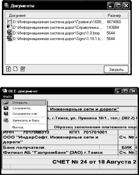 Для изменения имени документа следует выделить его в списке и после этого нажать на нем еще раз указателем мыши, затем отредактировать имя и нажать клавишу Enter. Для просмотра или редактирования документов из списка следует дважды щелкнуть указателем мыши на соответствующей строчке в списке документов или нажать кнопку Редактирование и в появившемся окне дважды щелкнуть на изображении содержимого документа. При этом система перейдет в режим редактирования с использованием средств того приложения, в котором данный документ был создан. После работы с документом при необходимости записи изменений следует нажать кнопку Запи-
