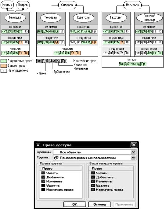 Рис. 10.18. Пример определения прав доступа в различных случаях