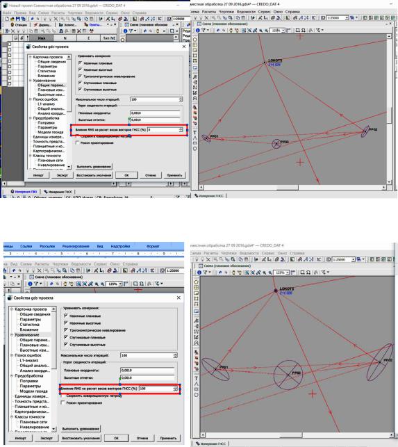 Оценка точности планового положения пунктов сети (по сторонам сети RMS от 0%) |