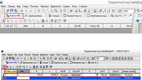 Таблица состоит из двух частей: верхней – в ней дается описание (заголовки) ходов, и нижней – в ней вводятся данные по каждому ходу. Количество ходов или пунктов в ходах неограниченно. Описание (заголовок) хода создается двумя способами – непосредственно в верхней части таблицы, либо в интерактивном режиме в графическом окне.