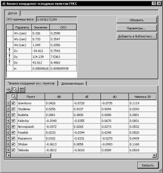 динат исходных пунктов ГНСС, с другой стороны, преобразование |