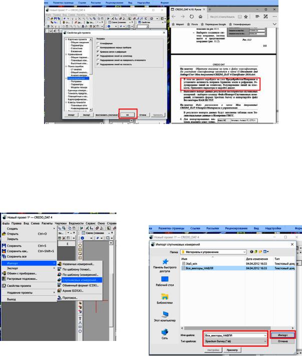 5. Выполните импорт данных результатов постобработки спутниковых измерений – выберите команду «Файл» / « мпорт» / «Спутниковых измерений» (рис. 31), установите формат «Spectrum Survey» и импорти-