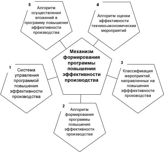 Элементами механизма формирования программ повышения эффективности производства являются: