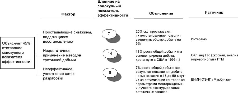 Рис. 4.13. Факторы, объясняющие низкий уровень нефтедобычи в расчете на скважину