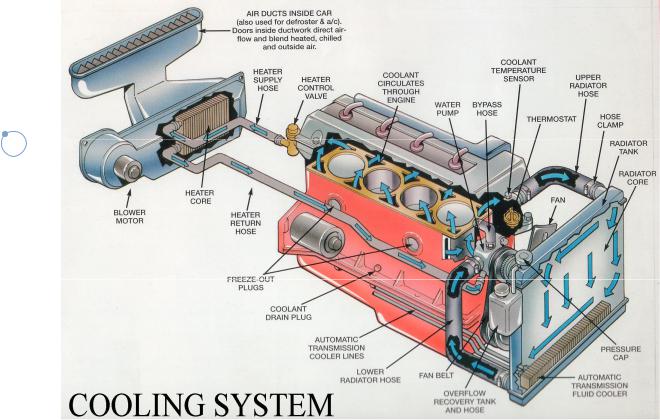 Water cooled engine; cooling system; retarded ignition; binding brakes; water level; fan belt; water flow; calcium content; “fur” removers; radiator matrix.