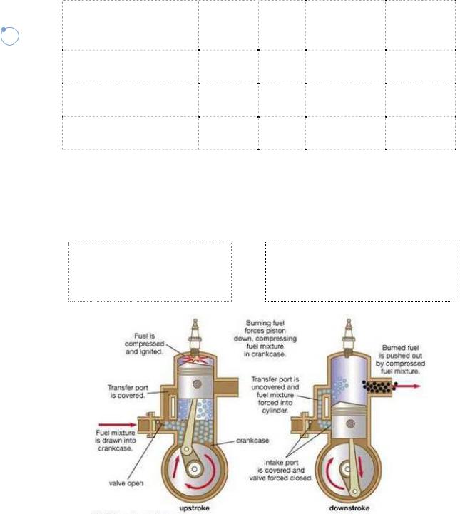 Задан е 2. Пользуясь данными таблицы 1 рисунков (fig. 5.1 – 5.3), опишите 2-тактный ензиновый двигатель, 4-тактный бензиновый двигатель, 4-тактный дизельный двигатель. Используйте при этом следующ е модели: