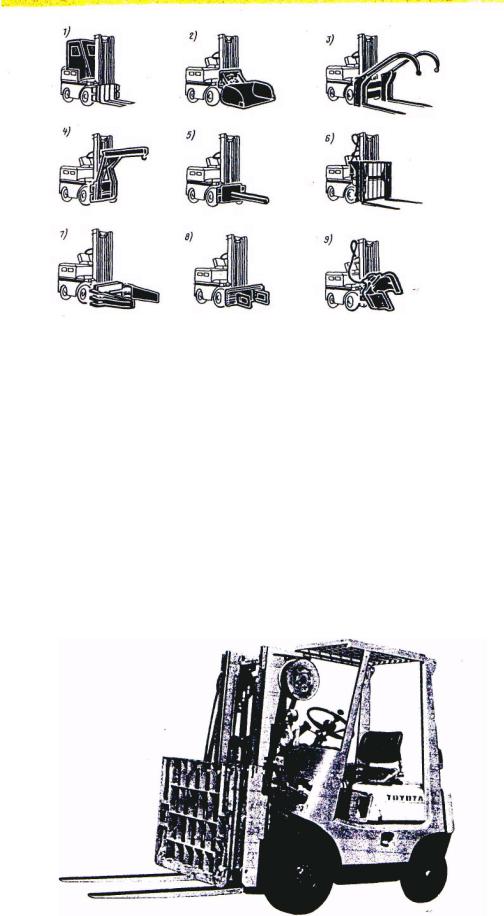 Основні захватні пристрої, які застосовуються навантажувачами, показані на рис. 2.41.
