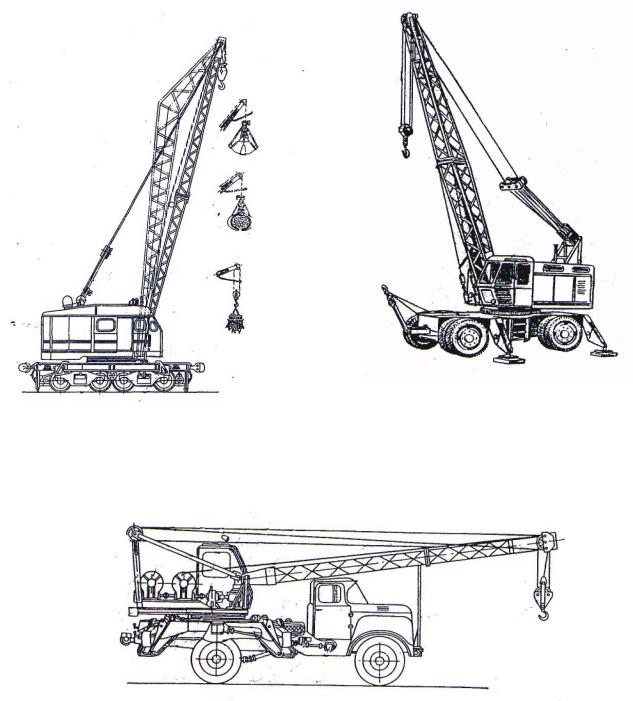 Стрілові крани бувають на залізничному ходу, пневмоколісні і гусеничні на крановому шасі, автокрани (на шасі автомобілів), а також портальні і баштові крани, які переважно використовуються на під’їзних коліях підприємств.